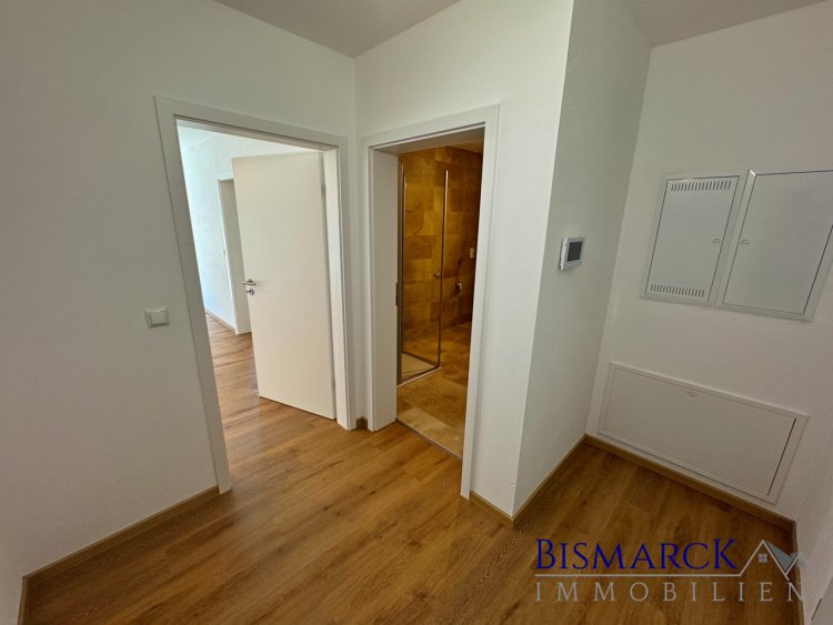 Die tolle Etagenwohnung im 1. Obergeschoss mit ca. 55 m² und Balkon befindet sich in einem modernen, neugebauten Mehrfamilienhaus mit neun Wohneinheiten.