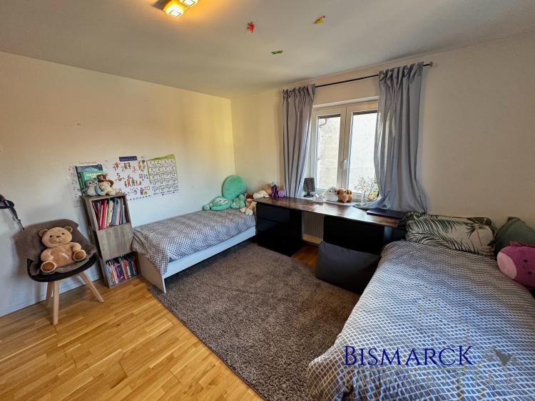 Der angrenzende Wohn- Essbereich mit Balkon verleiht der Wohnung eine gemütliche Atmosphäre. Zwei Kinderzimmer, ein Schlafzimmer und ein geräumiger Flur runden das Angebot ab. Hinzu kommt ein helles Badezimmer mit Badewanne, Waschtisch und Fenster. Eine separate Toilette mit Dusche gehört ebenfalls zum Angebot. Ein Einbauschrank im Flur schafft genügend Platz für Ihre Schuhe.