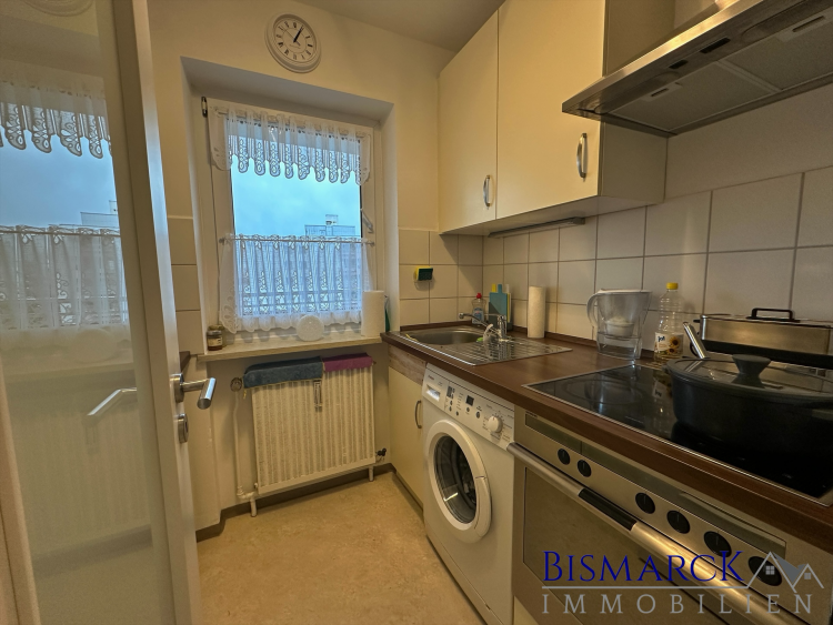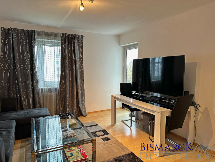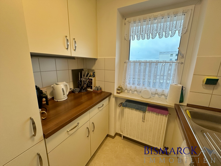 Die Küche und ein Schlafzimmer runden die schön geschnittene Wohnung ab. Die hellen Fensterfronten im Wohnzimmer mit Zugang zum Balkon, lassen die Wohnung sehr hell und freundlich wirken.