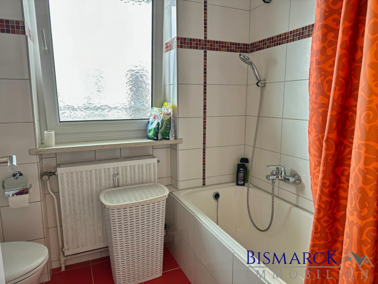 * Badezimmer mit Wanne und Fenster
