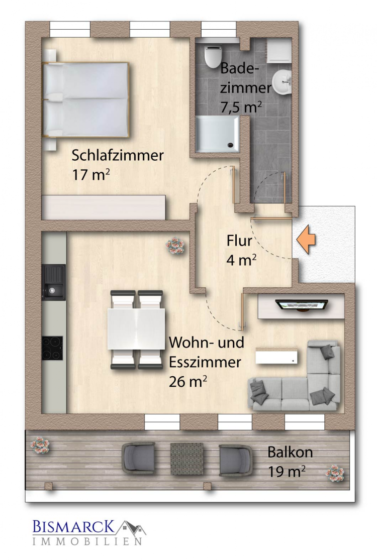 Der Maklervertrag kommt durch schriftliche Vereinbarung mit uns oder durch die Inanspruchnahme unserer Maklertätigkeit auf der Basis des Objekt-Exposés und seiner Bedingungen zustande. Die Höhe der Courtage richtet sich nach der am 23.12.2020 in Kraft getretenen, gesetzlichen Regelungen zur Teilung der Maklercourtage. Die Zahlung ist mit dem Zustandekommen des Kaufvertrages (notarieller Vertragsabschluss) verdient und fällig. Bismarck Immobilien erhält einen unmittelbaren Zahlungsanspruch gegenüber dem Verkäufer sowie dem Käufer (Vertrag zugunsten Dritter, § 328 BGB).