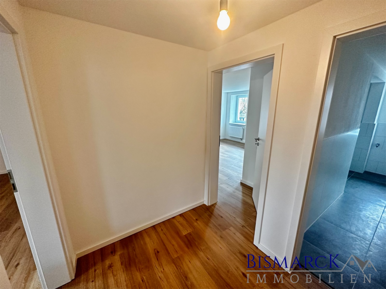 Das gesamte Gebäude wurde dieses Jahr komplett kernsaniert und entspricht der KFW 70 Norm - dadurch ist die Wohnung in einem neuwertigen Zustand und Erstbezug. Über den geräumigen Wohn-Essbereich erreichen Sie den Balkon, dieser eignet sich hervorragend um Abende an der frischen Luft ausklingen zu lassen.