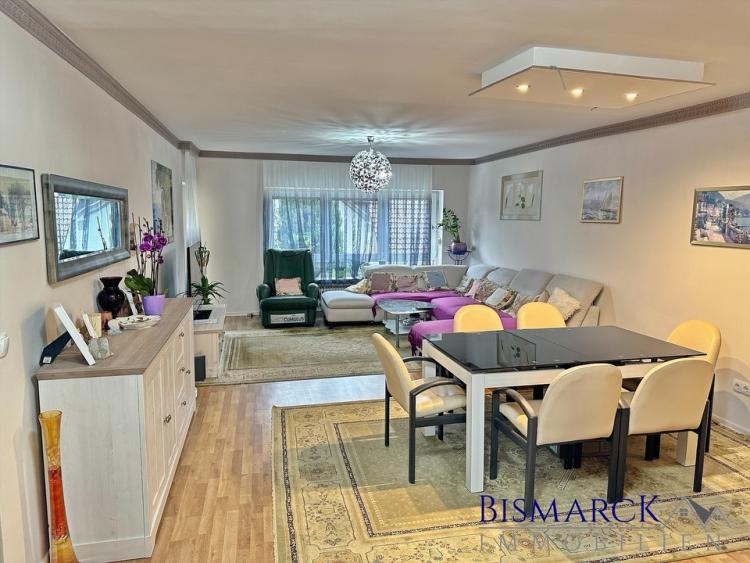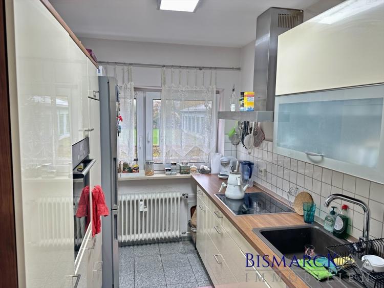 Der Wohnbereich bietet wunderbar Platz für eine Couchgarnitur und eine Wohnwand. Durch die große Fensterfront ist die Wohnung sehr hell und freundlich. Sie separate Küche mit einer schönen Einbauküche mit allen Elektrogeräten kann vom neuen Eigentümer übernommen werden. In der angrenzende Essdiele haben Sie genügend Platz für Ihren Esstisch.