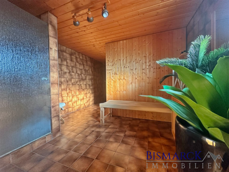 Neben der üblichen Technik- und Abstellfläche bietet das Untergeschoss einen Weinkeller mit einer gemütlichen Weinecke. Ein weiterer Höhepunkt sind die Sauna mit eigenem Ruhebereich und Dusche sowie die maßgefertigte Bauernstube im urigen Flair. Ein Haus eigenes Fitnessstudio mit Blick in den Garten befindet sich ebenfalls in dem Gebäude.