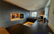Das Erdgeschoss des Haupthauses eröffnet sich über ein großzügiges Entrèe mit einer vom Schreiner eingebauten Garderobe. Der weitläufige Wohn- und Essbereich mit einer massgefertigten Einbauküche und Kamin bietet einen direkten Zugang zur überdachten Terrasse.